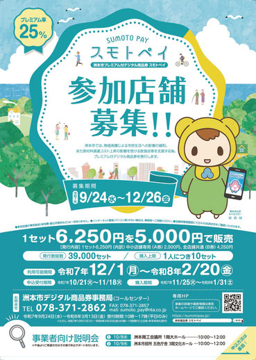 令和7年度の「洲本市プレミアム付デジタル商品券」の参加店舗募集が始まっています。